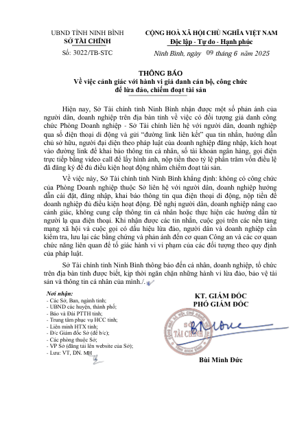 Thông báo V/v cảnh giác với hành vi giả danh cán bộ, công chức để lừa đảo, chiếm đoạt tài sản